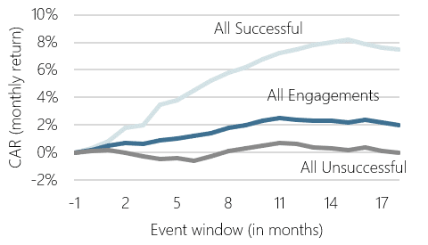 Indeed, more recent studies, such as one conducted by Lazard Capital Markets Advisory (2023), point to declining effects of US activist campaigns. It may seem that a less confrontational, and more constructive engagement strategy yields better results.